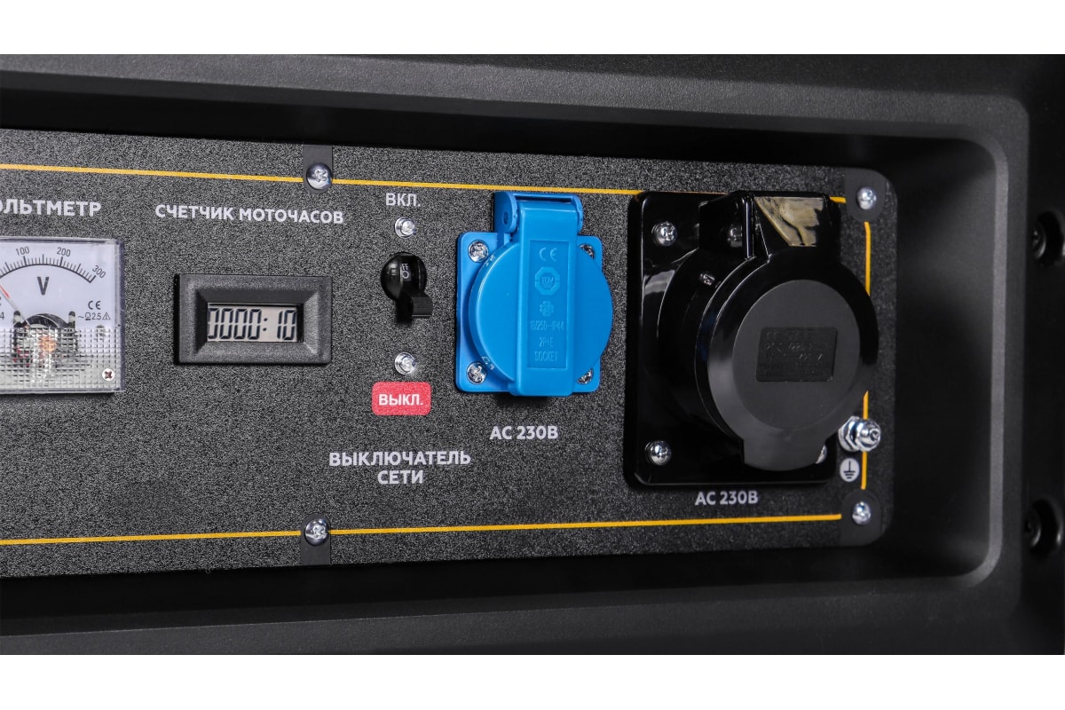 - Генератор оснащен защитой контактов и розеток.