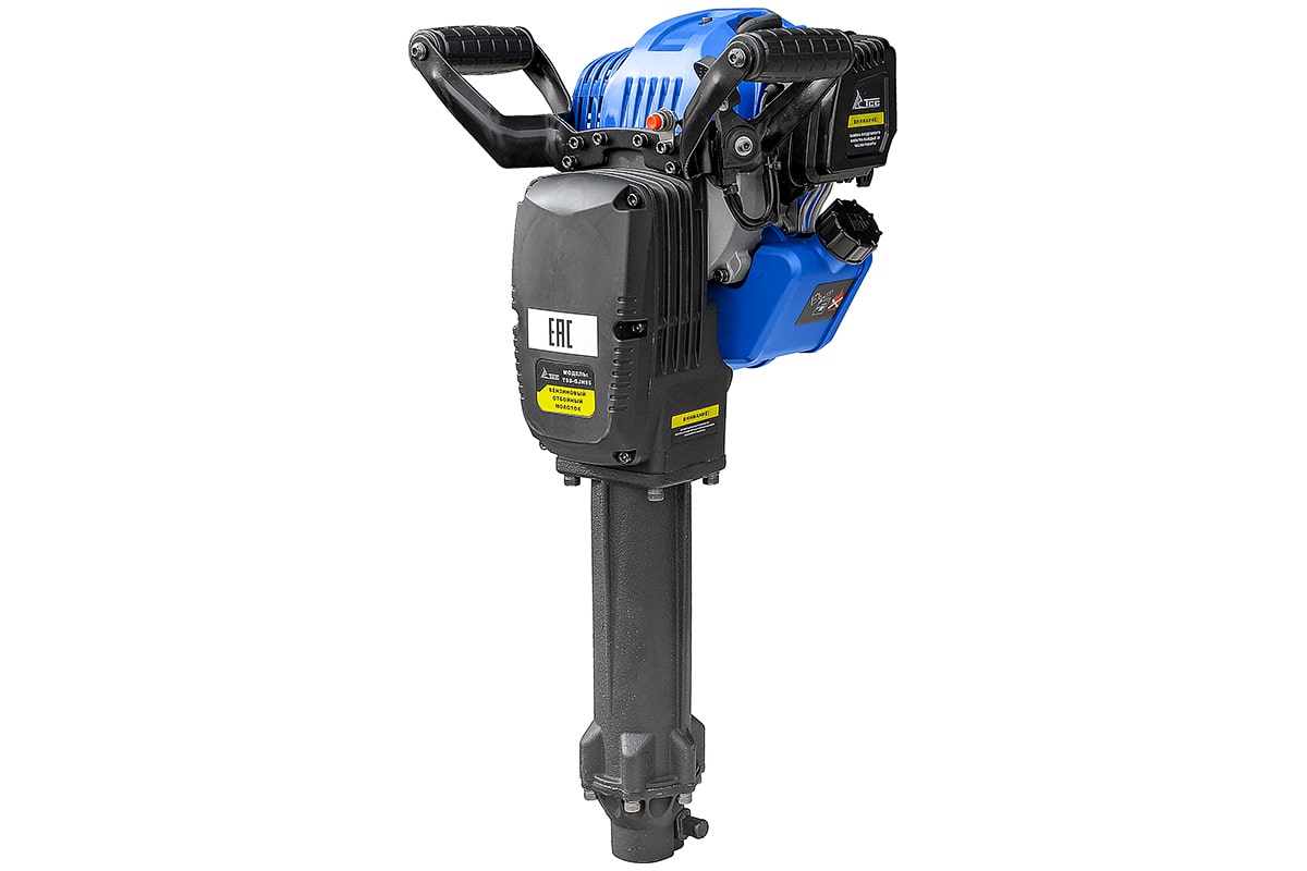 Для разрушения структур на дорожных покрытиях, строительных объектов и зданий используют бензиновый перфоратор TSS-GJH95 207000. Мотор отбойного молотка - двухтактный, одноцилиндровый, с мощностью 2.31 л.с. Запуск производится с помощью ручного стартера, а расход топлива составляет примерно 0.8 литра в час. Рекомендуем использовать графитовую смазку в качестве масла для работы устройства.