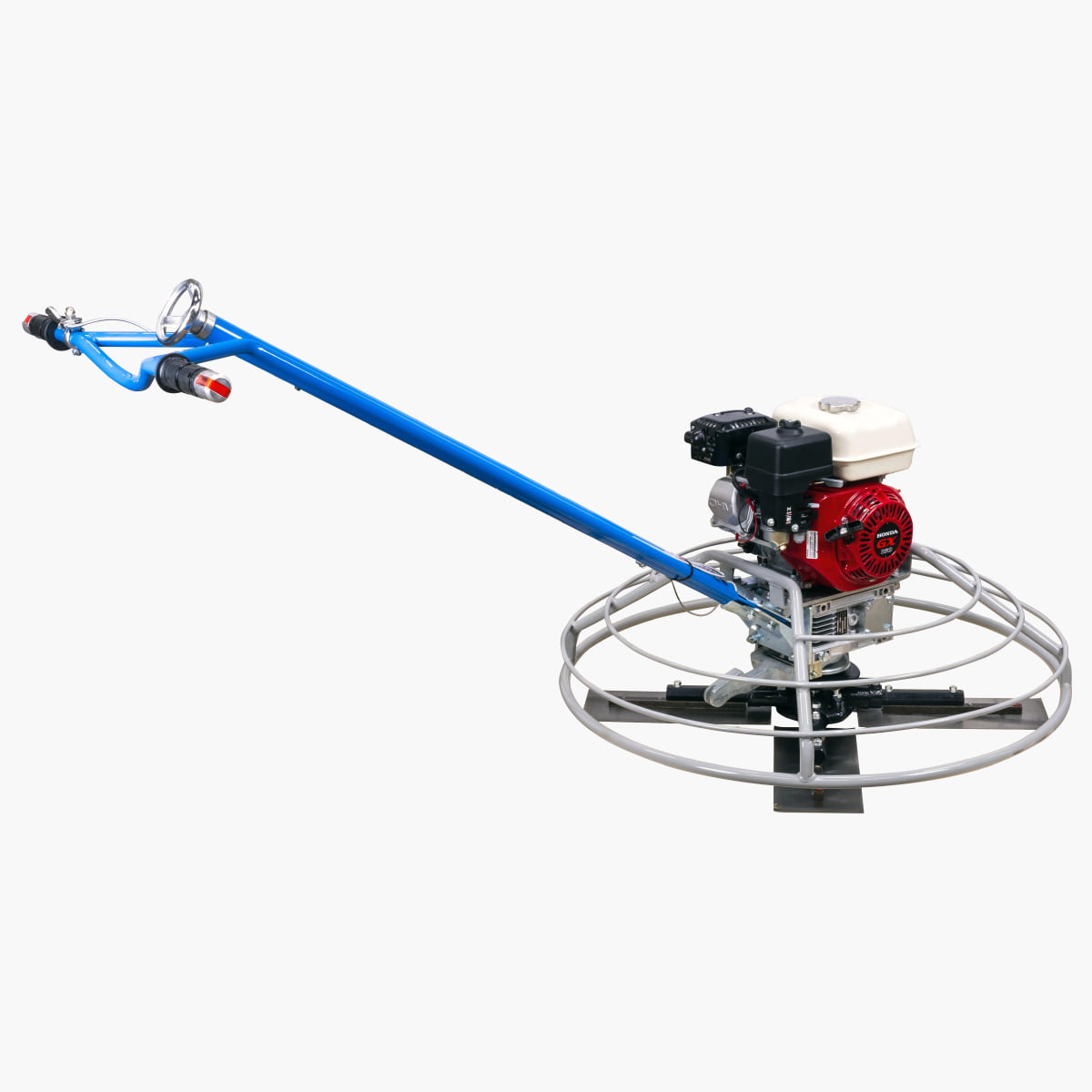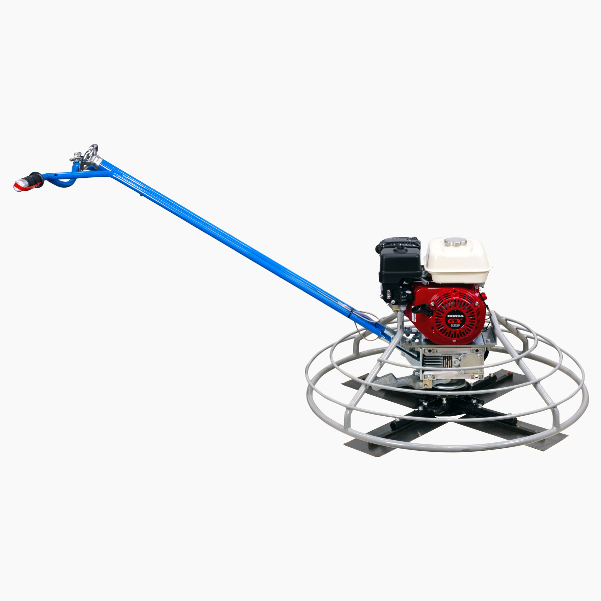 Модель ручного вертолета по бетону оснащена одноцилиндровым четырехтактным мотором от известного производителя Honda, который работает на бензине. Благодаря надежному двигателю мощностью 4 кВт, устройство способно обрабатывать большие площади бетонных поверхностей в отличной стабильностью и производительность.